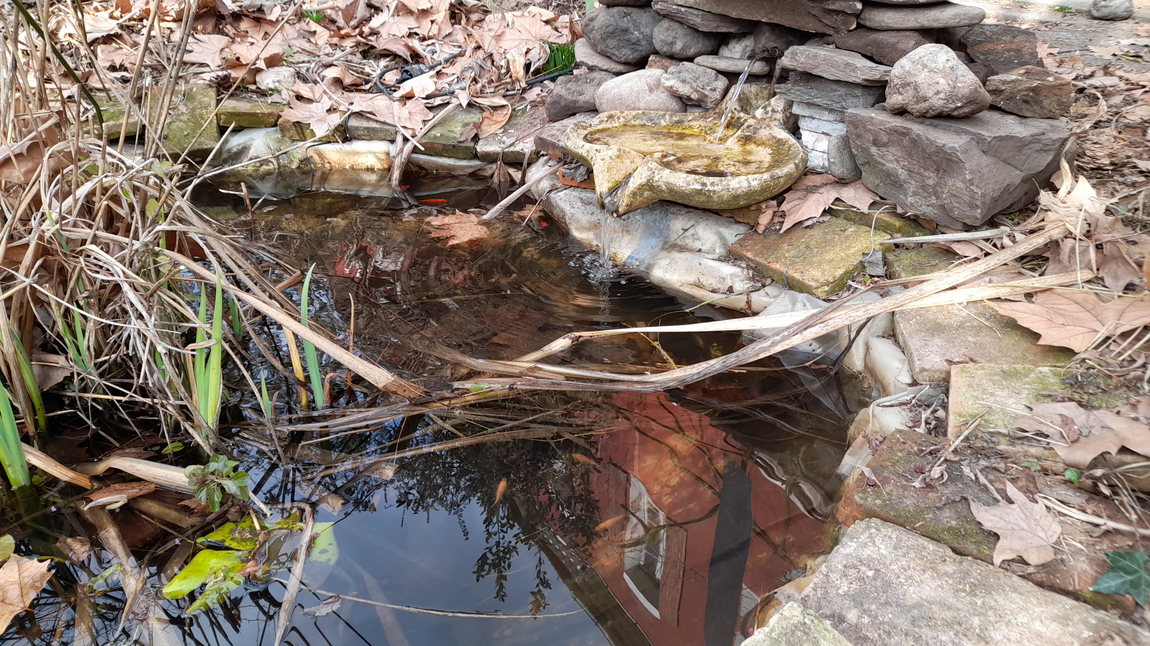 Les poissons sont ravis par la nouvelle fontaine!